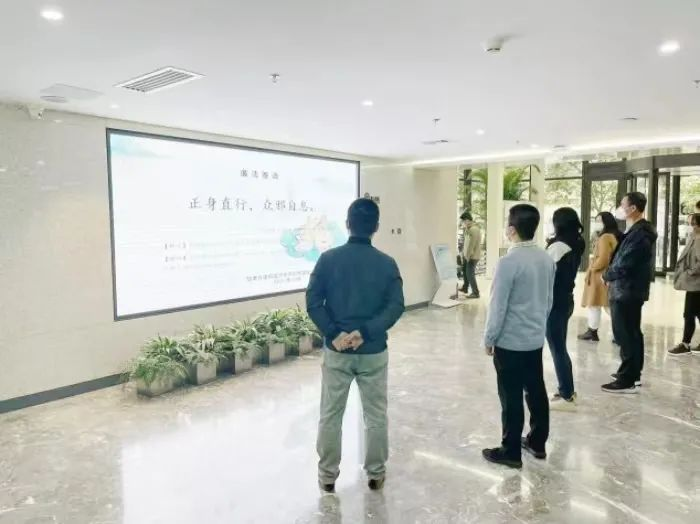 文化的作用如春风化雨,润物无声,内化于心,外践于行。近日,省建筑设计院一楼宣传大屏播放的“正身直行,众邪自息”的廉洁寄语,吸引了多名干部职工驻足观看。