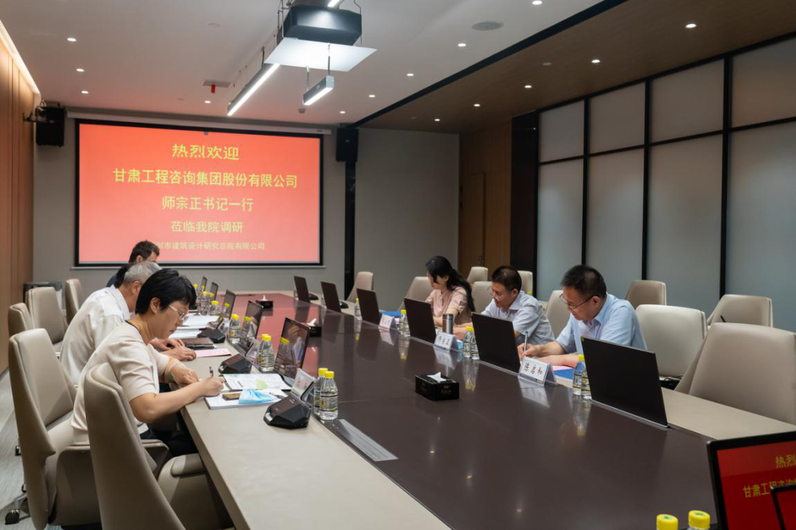 在与深圳市建筑设计研究总院有限公司交流座谈会上,双方就上市企业法人治理、企业组织建设、国企改革等问题进行了交流,增进了相互了解。双方均表示希望今后将加强业务和人才的交流合作,促进双方优势互补,为深总院和甘咨询两家企业架起合作共赢的桥梁。