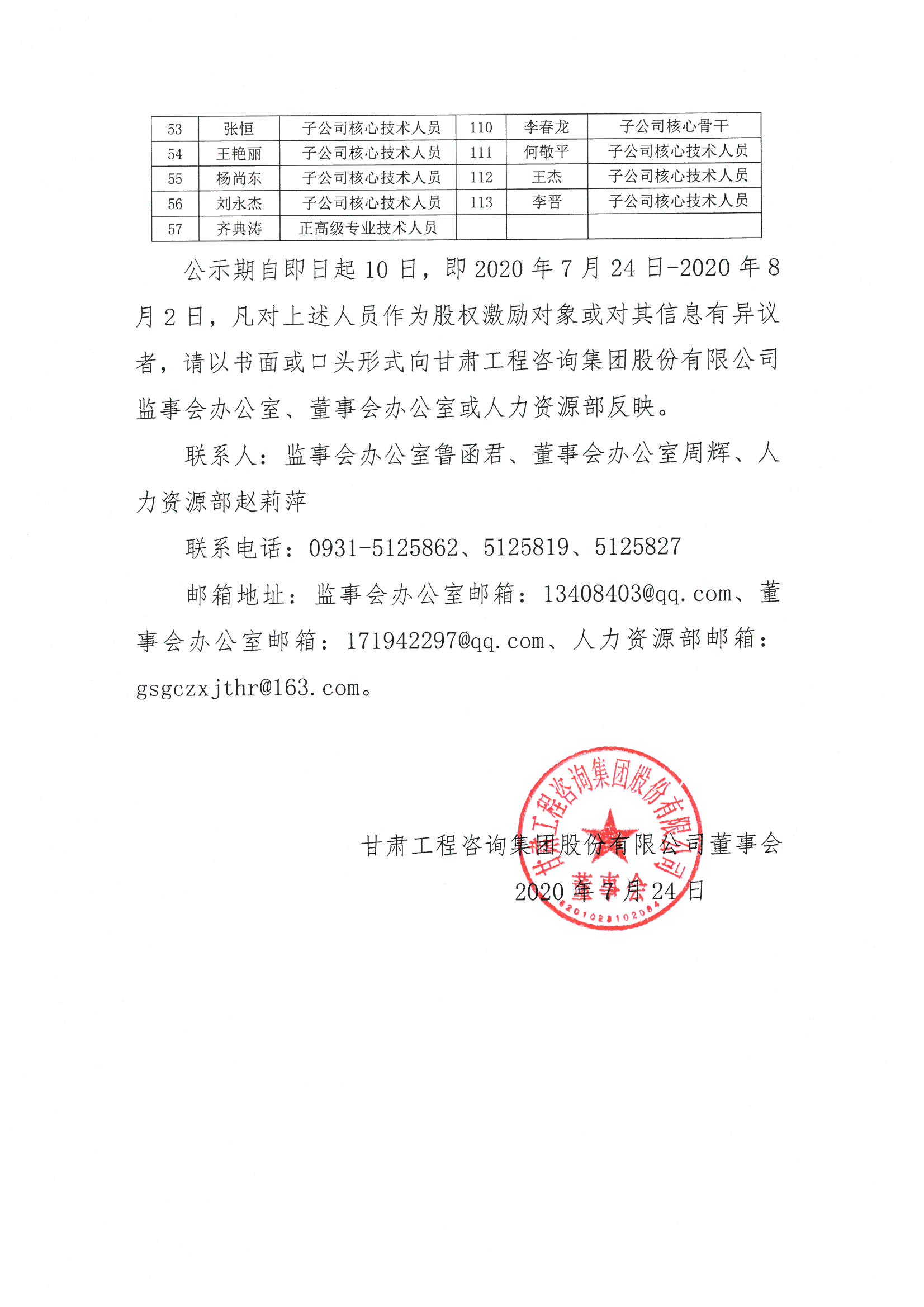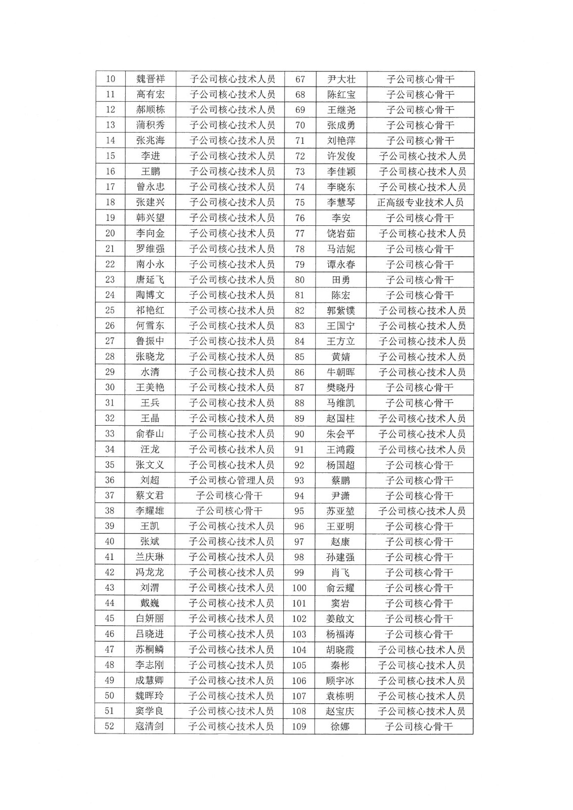 2019年股票激励计划预留股份拟授予名单
