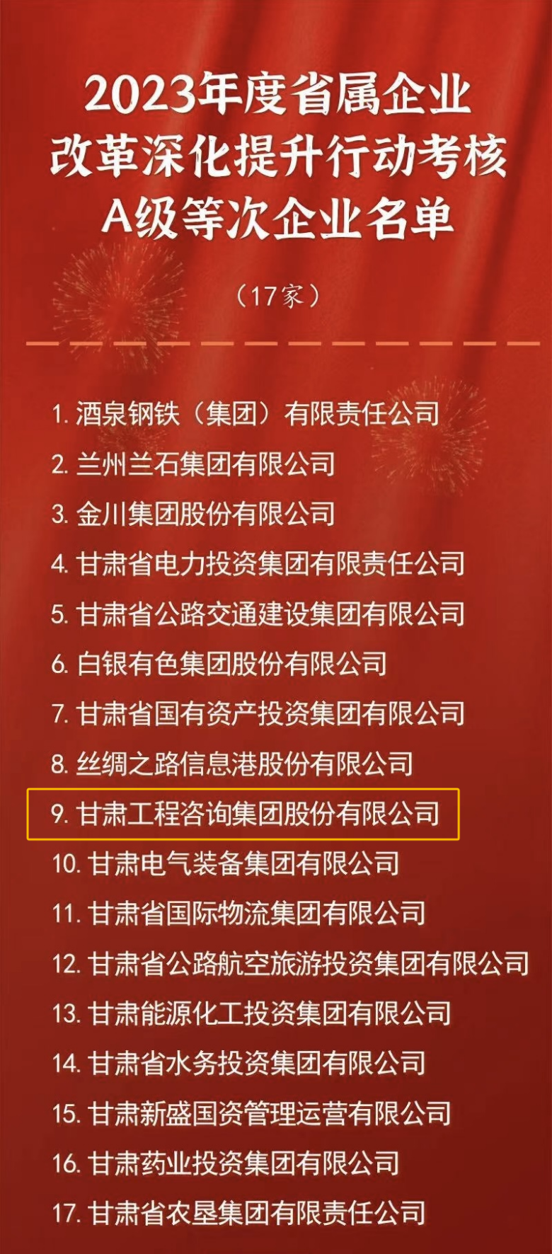 2023年度省属企业改革深化提升行动考核A级等次企业名单