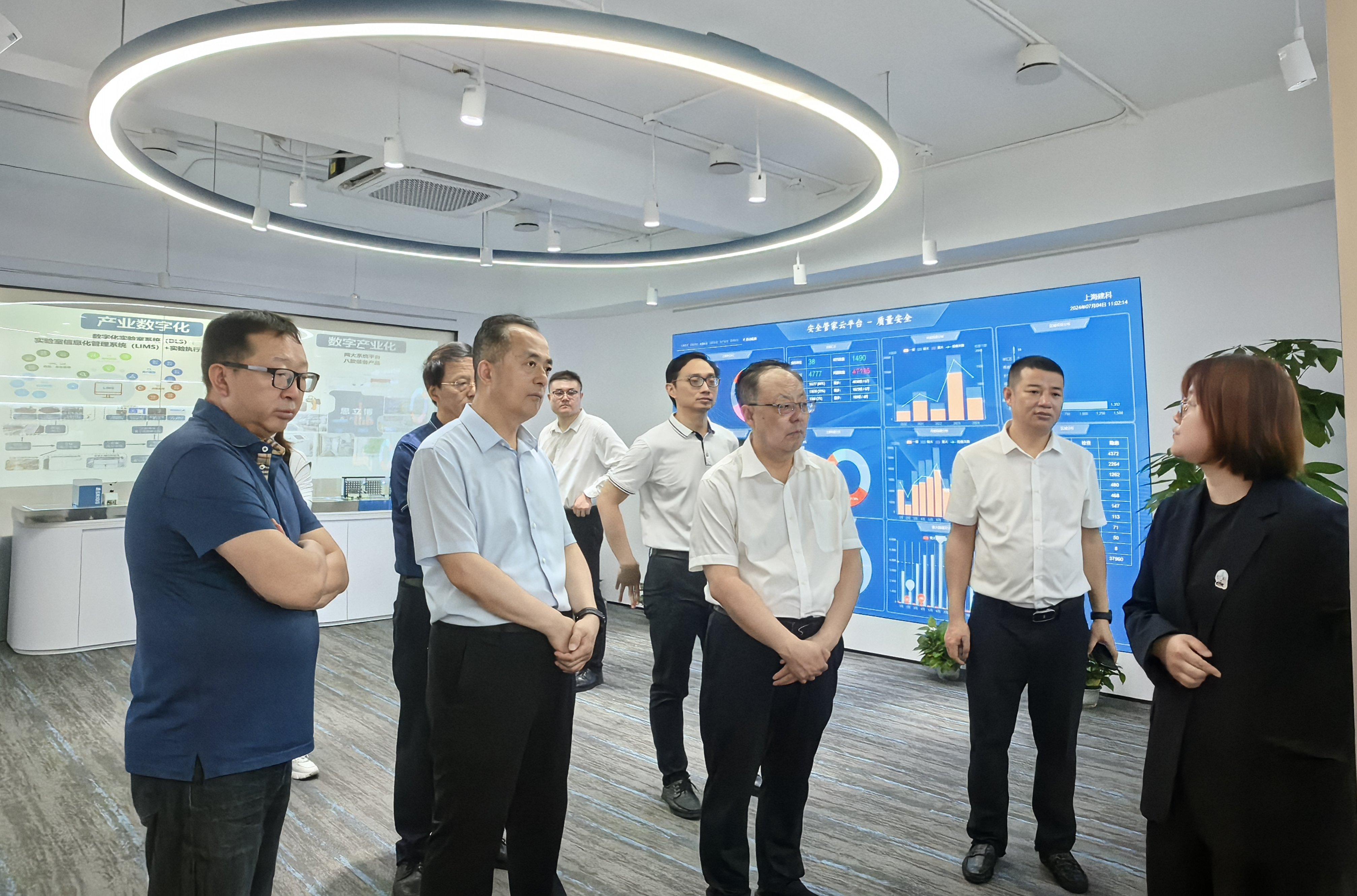 调研组一行参观考察了上海建科集团检测中心莘庄园区三代绿色建筑示范楼、工程检测业务实验室并开展了座谈交流,全面了解了园区建设运维、业务开展、设备配置、经营管理等情况,为西部工程检测研发基地的运营发展积累了宝贵经验。