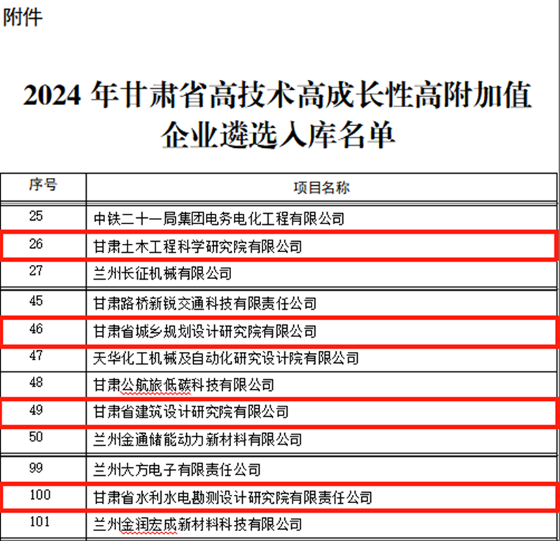 近日,甘肃省科技厅公布2024年甘肃省高技术高成长性高附加值(简称“三高”)企业名单,开云·官方版在线入口旗下省建筑设计院、省水电设计院、省城乡规划院、甘肃土木工程院从众多企业中脱颖而出,成功登上全省首批“三高”企业榜单。