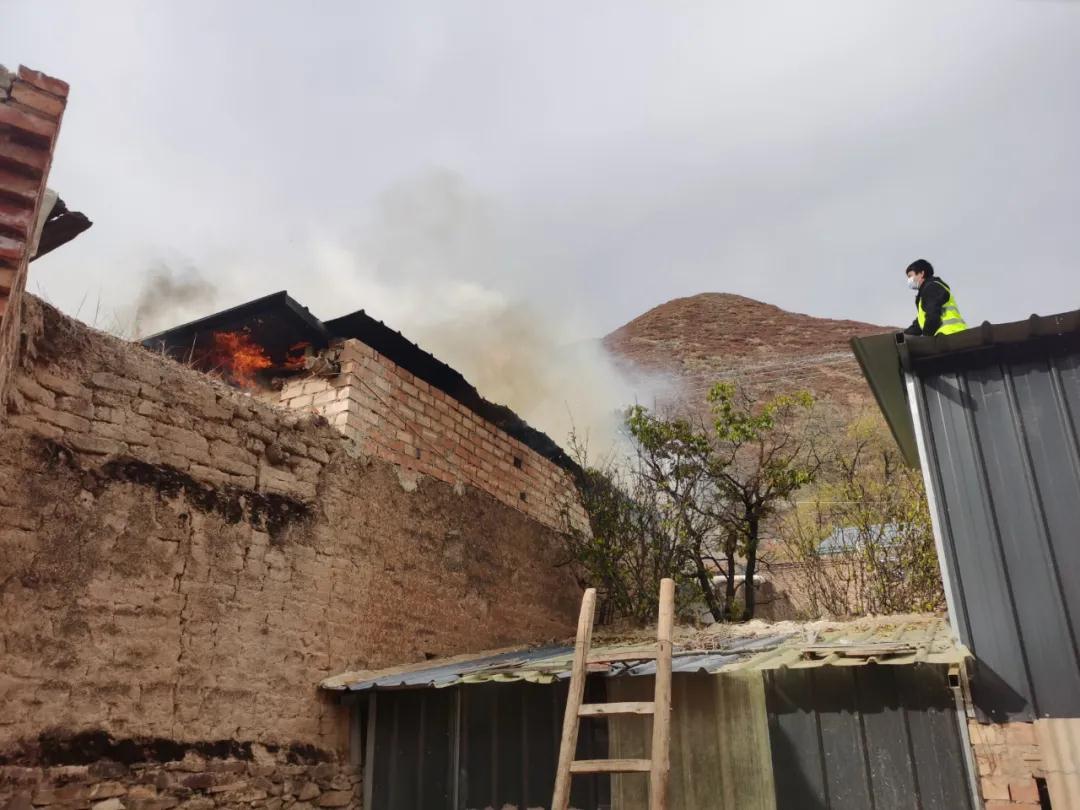 10月30日下午3点,交通监理公司负责帮扶的临潭县洮滨镇马旦沟村一户村民家中突然冒出滚滚浓烟,火光在浓烟中忽隐忽现。着火是一座砖木结构彩钢屋顶的新房,火从屋顶烧起,越烧越旺。着火的房屋旁边堆放着多年的老柴火,干燥异常,一丝火星就能点燃,而与着火点紧邻着的就是布局紧密的乡亲们的房屋,再往外围则紧接着山林,如果火势蔓延,后果将不堪设想。