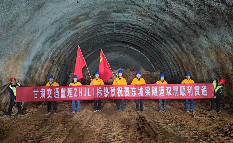 由省交通监理公司承监的卓合项目东坡梁隧道左、右洞顺利贯通,标志着卓合高速公路建设取得重大进展,实现关键性节点突破。东坡梁隧道位于临潭县城关镇杨升沟至范家咀村地段山体,隧道按左、右线分离式设计,进口最大净距34m,出口最大净距24m,左线隧道进口桩号ZK76+020,出口桩号ZK78+575,全长2555m,右线隧道进口桩号K76+030,出口桩号K78+605,全长2575m。隧址区高程2780.00~2953.00,相对高差173m,隧道左线最大埋深156.5m,右线最大埋深148m,围岩为中风化泥岩,褐红色,薄层状构造,胶结程度一般,施工难度较大。自开工以来,卓合项目总监办及第一驻地办始终紧盯质量、安全、目标不放松,督促施工单位认真贯彻落实省厅质量和管理“双提升”各项要求,完善施工工艺,在全体监理人员的不懈努力下,通过精细化管控、标准化施工、合理化创新,有效解决了施工过程中出现的各种不利因素和风险点,大大提高了工程质量和施工效率,圆满完成了隧道掘进施工监理任务。