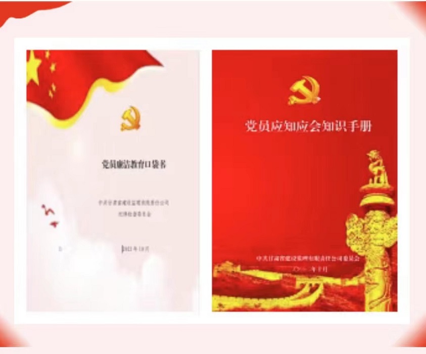 活动中,建设监理公司党委还为党员精心制作了《党员廉洁教育口袋书》及《党员应知应会知识手册》,筛选出党纪党规、党建常识、名言警句、家风家教、廉洁从业等各方面的常用知识,方便党员学习使用。此次系列党建活动不但拓展了党员干部职工的学习途径,丰富了党建宣传形式,更有助于进一步提升党员的政治素质和对党建工作的认知,凝聚廉政廉洁、风清气正的思想共识。
