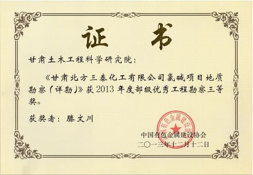 优秀工程勘察三等奖