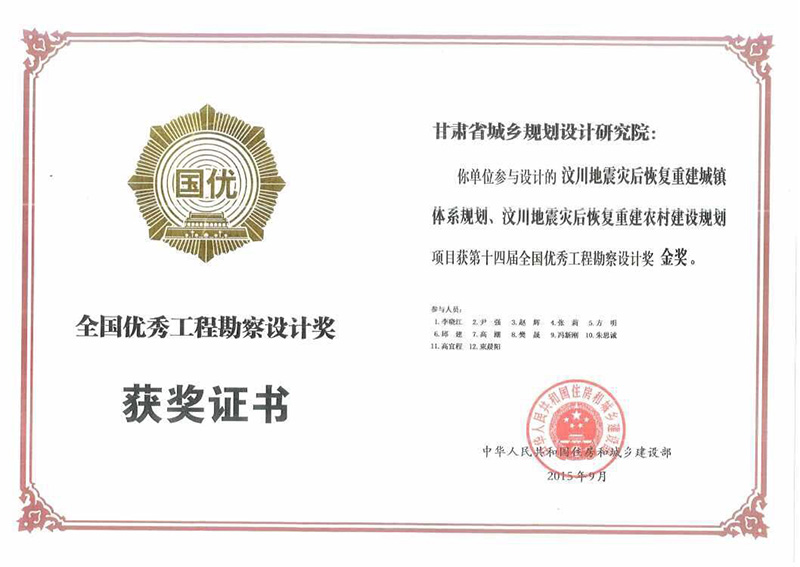 第十四届全国优秀勘察设计奖金奖